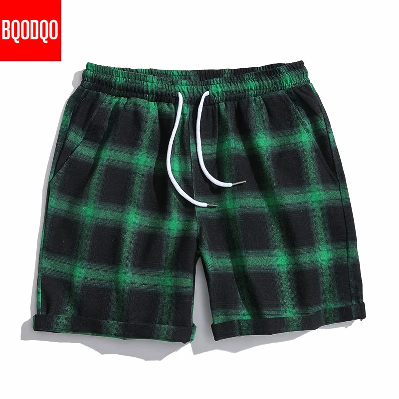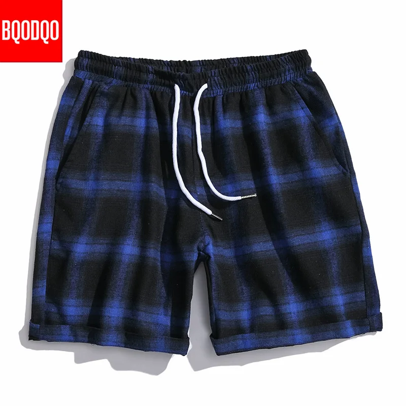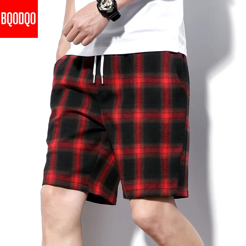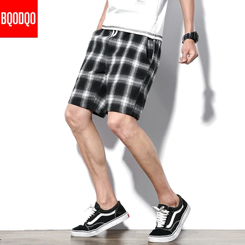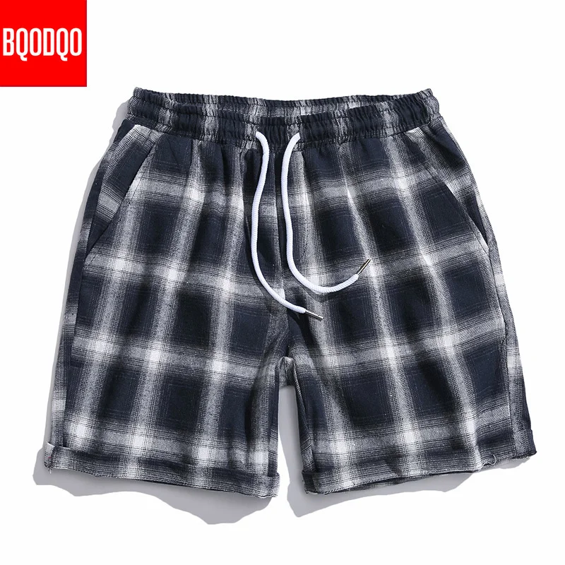 New Plaid Streetwear Beach Board Shorts Men Black Baggy Summer Cotton Male Gray Hip Hop Casual Gym Body