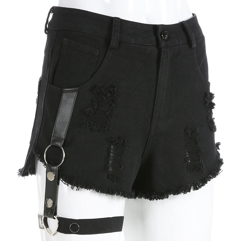 price reduction Sweetown Moto & Biker Punk Style Jean Shorts Women Summer Bottoms Sexy Ribbon Patchwork Hole Short